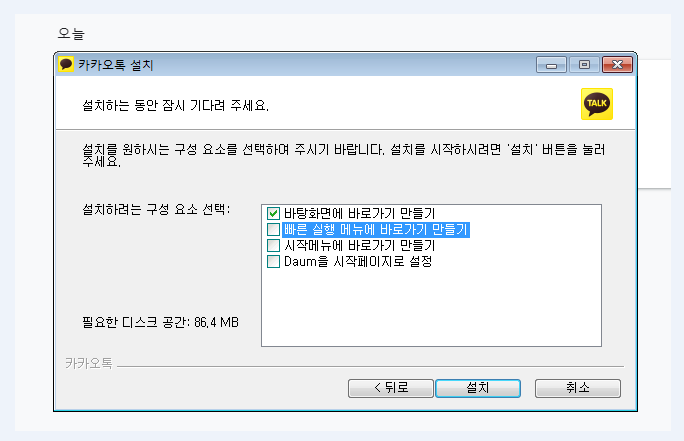 저도 컴퓨터에 운영체제를 설치한 후에 인터넷이 잡히면 크롬을 깔고 그 다음 우선순위는 카톡을 선택합니다. 이렇게 받아서 설치를 할 때에는 당연히 설치마법사를 잘 확인하셔야하네요.