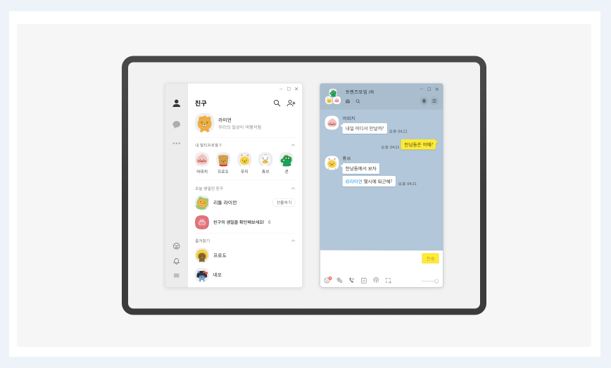 현재는 모바일에서 문자를 몰아내고 카톡을 사용하는게 대중화되었습니다. 여기에 컴퓨터에서도 모바일 계정을 그대로 사용할 수 있다는 장점을 100% 발휘하고 있습니다. 다시 말해 대한민국에서 PC와 스마트폰의 메시지는 카톡이 당연스러워졌네요.