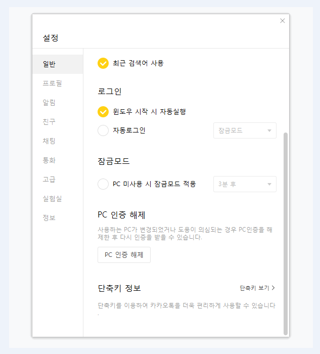 특히나 컴퓨터 카카오톡 무료 다운로드 설치를 하게 되면 사용하기 좋은 것이 자동실행과 잠금모드, 알림 등을 PC에 맞춰 활용이 가능하다는 점입니다. 이 부분은 설정에서 기능들을 잘 보시고 자신에게 맞게끔 맞춰서 세팅을 해주시면 좋을듯 싶어요.