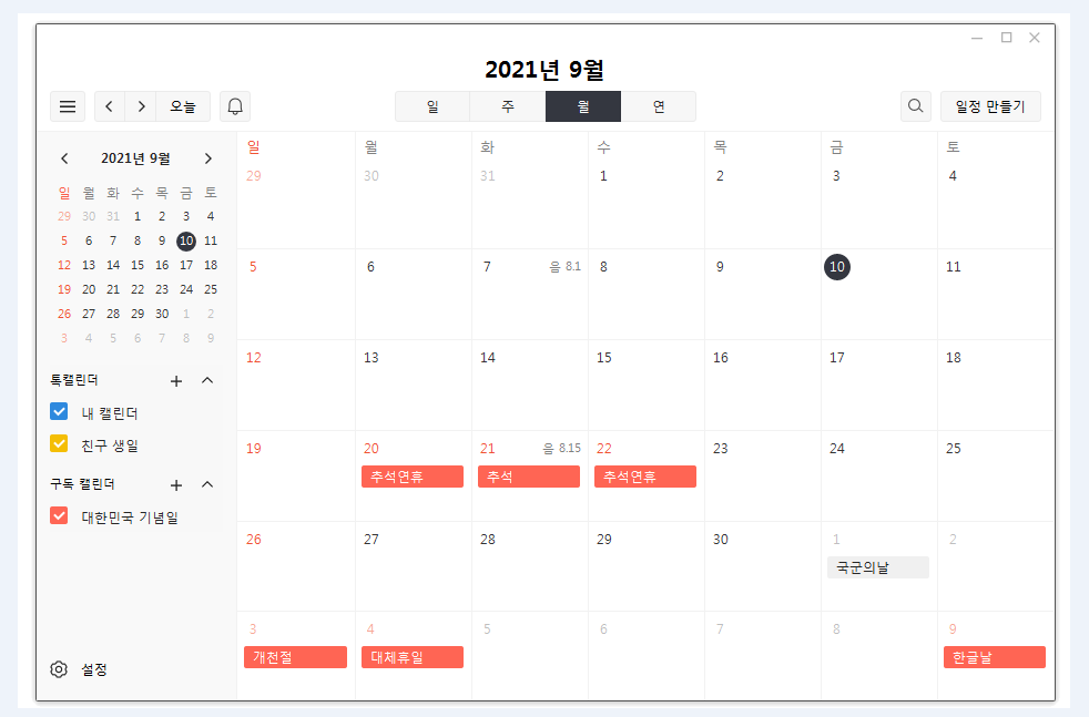 모바일 화면이 작아서 불편하신 분들에게 큰 모니터 화면에서 사용이 되어지는 PC프로그램은 큰 장점으로 다가올 수가 있는 것 같아요. 이점을 잘 누리는 부분은 캘린터부분인 것 같기도 합니다.